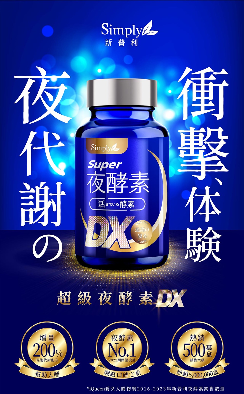 日本最夯酵素瘦身健康食品全面升級再突破!Simply新普利超級夜酵素DX雙酵重啟代謝,三大功酵升級,雙乘配方最強代謝進化版。瘦身神器最強夜代謝突破!全能天后楊丞琳3年代言推薦,夜間代謝酵素錠,雙酵進化的新普利超級夜酵素DX,立即體驗。Super超級夜酵素DX 加強版促進新陳代謝,幫助消化 維持消化道機能,使排便順暢。